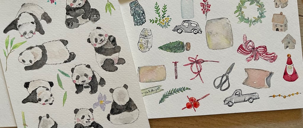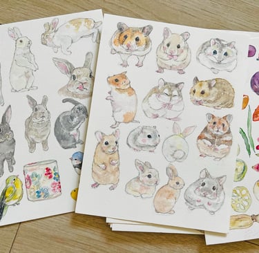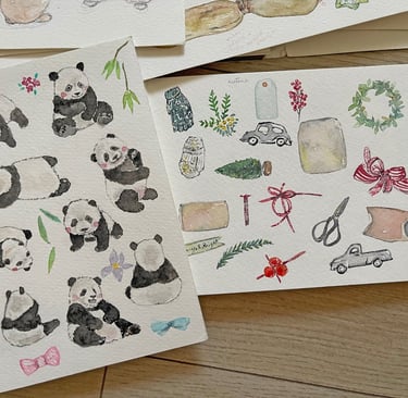 After years of working digitally, I created clipart, built collections, and slowly grew a large archive of digital pieces, and it also means that my original paintings have been kept in folders, in drawers, in carefully stacked piles of paper—finished, complete, and yet somehow paused, and then they became still.